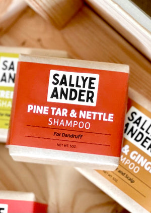 The medicinal properties of nettles have been known for many centuries. Packed with essential vitamins and minerals such as magnesium, vitamin C, vitamin K, potassium, silica and calcium, researchers are beginning to be able to substantiate the old herbalist’s claims that nettle can restore hair loss. We don’t promise that, but we do promise that. SallyeAnder Pine Tar & Nettle Shampoo is one of the most effective treatments you can find for dry, flaky, oily scalp and the end result will be shiny, healthy hair. Our great-smelling bar is super convenient to carry, no bottle, no fuss. For dandruff.